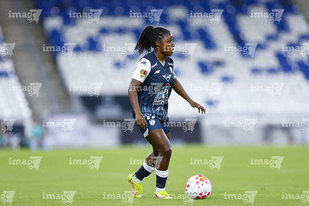 Monterrey, Nuevo León, 22 de septiembre de 2025. Ayooluwa Oke, durante el partido correspondiente a la jornada 12 del torneo Apertura 2025 de la Liga BBVA MX Femenil, entre los Rayados del Monterrey y los Tuzos del Pachuca, realizado en el estadio BBVA. Foto: Imago7/