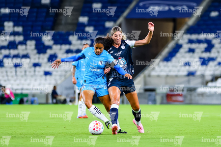 Monterrey, Nuevo León, 22 de septiembre de 2025. Jocelyn Orejel y Alice Soto, durante el partido correspondiente a la jornada 12 del torneo Apertura 2025 de la Liga BBVA MX Femenil, entre los Rayados del Monterrey y los Tuzos del Pachuca, realizado en el estadio BBVA. Foto: Imago7/David Arzamendi
