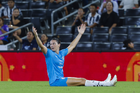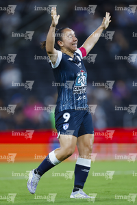 Monterrey, Nuevo León, 22 de septiembre de 2025. Esthefanny Barreras en festejo, durante el partido correspondiente a la jornada 12 del torneo Apertura 2025 de la Liga BBVA MX Femenil, entre los Rayados del Monterrey y los Tuzos del Pachuca, realizado en el estadio BBVA. Foto: Imago7/David Arzamendi