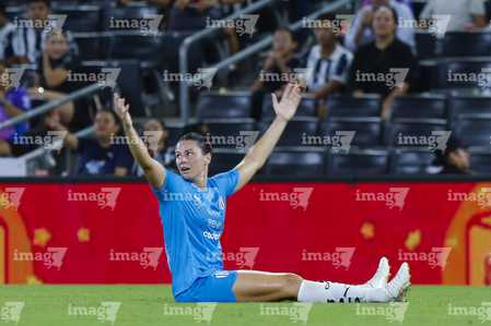 Monterrey, Nuevo León, 22 de septiembre de 2025. Katty Martínez en lamento, durante el partido correspondiente a la jornada 12 del torneo Apertura 2025 de la Liga BBVA MX Femenil, entre los Rayados del Monterrey y los Tuzos del Pachuca, realizado en el estadio BBVA. Foto: Imago7/