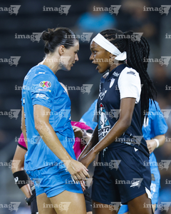 Monterrey, Nuevo León, 22 de septiembre de 2025. Christina Burkenroad y Kenti Robles, durante el partido correspondiente a la jornada 12 del torneo Apertura 2025 de la Liga BBVA MX Femenil, entre los Rayados del Monterrey y los Tuzos del Pachuca, realizado en el estadio BBVA. Foto: Imago7/ Nora Guerrero