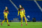 Ciudad de México, 26 de septiembre de 2025. Eva González y Kiana Palacios, durante el partido correspondiente a la jornada 13 del torneo Apertura 2025 de la Liga BBVA MX, entre las Águilas del América y las Bravas de FC Juárez, realizado en el estadio Ciudad de los Deportes. Foto: Imago7/ Alexis Chavez