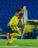 Ciudad de México, 26 de septiembre de 2025. Scarlett Camberos en festejo de gol, durante el partido correspondiente a la jornada 13 del torneo Apertura 2025 de la Liga BBVA MX Femenil, entre las Águilas del América y las Bravas de Juárez, realizado en el Estadio Ciudad de los Deportes. Foto: Imago7/ Mauricio Ruiz