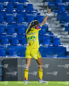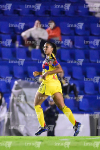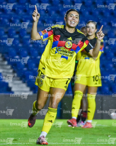 Ciudad de México, 26 de septiembre de 2025. Itzel Velasco en festejo, durante el partido correspondiente a la jornada 13 del torneo Apertura 2025 de la Liga BBVA MX, entre las Águilas del América y las Bravas de FC Juárez, realizado en el estadio Ciudad de los Deportes. Foto: Imago7/ Alexis Chavez