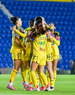 Ciudad de México, 26 de septiembre de 2025. Jugadoras del América femenil en festejo de gol, durante el partido correspondiente a la jornada 13 del torneo Apertura 2025 de la Liga BBVA MX Femenil, entre las Águilas del América y las Bravas de Juárez, realizado en el Estadio Ciudad de los Deportes. Foto: Imago7/ Mauricio Ruiz