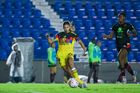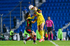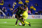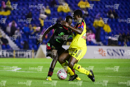 Ciudad de México, 26 de septiembre de 2025. Enekia Lunyamila y Chidinma Okeke, durante el partido correspondiente a la jornada 13 del torneo Apertura 2025 de la Liga BBVA MX, entre las Águilas del América y las Bravas de FC Juárez, realizado en el estadio Ciudad de los Deportes. Foto: Imago7/ Alexis Chavez