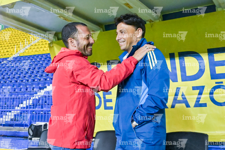 Ciudad de México, 26 de septiembre de 2025. Oscar Fernández, director técnico, y Angel Villacampa, director técnico, durante el partido correspondiente a la jornada 13 del torneo Apertura 2025 de la Liga BBVA MX Femenil, entre las Águilas del América y las Bravas de Juárez, realizado en el Estadio Ciudad de los Deportes. Foto: Imago7/ Mauricio Ruiz