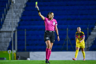 Ciudad de México, 26 de septiembre de 2025. Priscila Eritzel Pérez Borja, árbitro central,, durante el partido correspondiente a la jornada 13 del torneo Apertura 2025 de la Liga BBVA MX Femenil, entre las Águilas del América y las Bravas de Juárez, realizado en el Estadio Ciudad de los Deportes. Foto: Imago7/ Mauricio Ruiz
