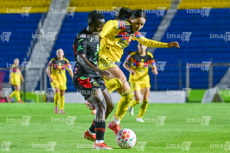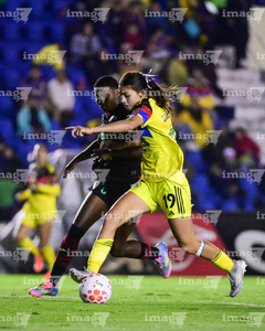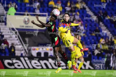 Ciudad de México, 26 de septiembre de 2025. Enekia Lunyamila y Scarlett Camberos, durante el partido correspondiente a la jornada 13 del torneo Apertura 2025 de la Liga BBVA MX, entre las Águilas del América y las Bravas de FC Juárez, realizado en el estadio Ciudad de los Deportes. Foto: Imago7/ Alexis Chavez