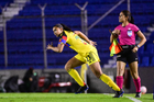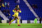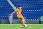 Ciudad de México, 26 de septiembre de 2025. Johana Garcia, durante el partido correspondiente a la jornada 13 del torneo Apertura 2025 de la Liga BBVA MX, entre las Águilas del América y las Bravas de FC Juárez, realizado en el estadio Ciudad de los Deportes. Foto: Imago7/ Alexis Chavez