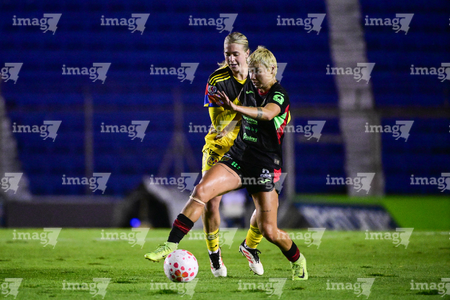 Ciudad de México, 26 de septiembre de 2025. Annie Karich y Karime Abud, durante el partido correspondiente a la jornada 13 del torneo Apertura 2025 de la Liga BBVA MX, entre las Águilas del América y las Bravas de FC Juárez, realizado en el estadio Ciudad de los Deportes. Foto: Imago7/ Alexis Chavez