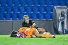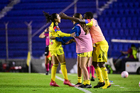 Ciudad de México, 26 de septiembre de 2025. Enekia Lunyamila resultó lesionada, durante el partido correspondiente a la jornada 13 del torneo Apertura 2025 de la Liga BBVA MX, entre las Águilas del América y las Bravas de FC Juárez, realizado en el estadio Ciudad de los Deportes. Foto: Imago7/ Alexis Chavez