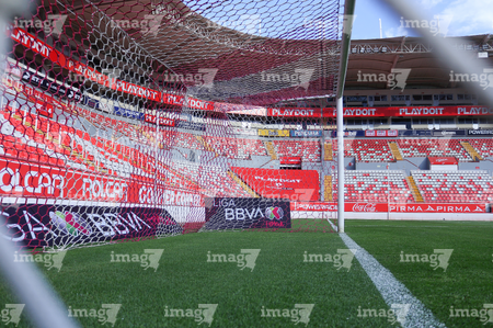 Aguascalientes, Aguascalientes, 29 de septiembre de 2025. Red de porteria, durante el partido correspondiente a la jornada 13 del torneo Apertura 2025 de la Liga BBVA MX, entre las Centellas del Necaxa y las Rayadas del Monterrey, realizado en el estadio Victoria. Foto: Imago7/ Rogelio Davila