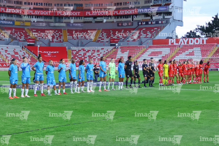 Aguascalientes, Aguascalientes, 29 de septiembre de 2025. Protocolo, durante el partido correspondiente a la jornada 13 del torneo Apertura 2025 de la Liga BBVA MX, entre las Centellas del Necaxa y las Rayadas del Monterrey, realizado en el estadio Victoria. Foto: Imago7/ Rogelio Davila