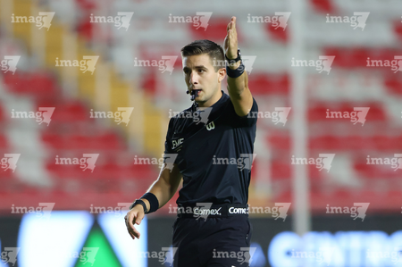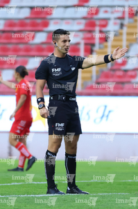Aguascalientes, Aguascalientes, 29 de septiembre de 2025. Figo Rodolfo López, árbitro central, durante el partido correspondiente a la jornada 13 del torneo Apertura 2025 de la Liga BBVA MX, entre las Centellas del Necaxa y las Rayadas del Monterrey, realizado en el estadio Victoria. Foto: Imago7/ Rogelio Davila