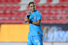Aguascalientes, Aguascalientes, 29 de septiembre de 2025. Jennifer Amaro, durante el partido correspondiente a la jornada 13 del torneo Apertura 2025 de la Liga BBVA MX, entre las Centellas del Necaxa y las Rayadas del Monterrey, realizado en el estadio Victoria. Foto: Imago7/ Rogelio Davila
