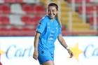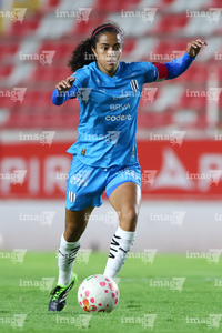 Aguascalientes, Aguascalientes, 29 de septiembre de 2025. Andrea Velarde, durante el partido correspondiente a la jornada 13 del torneo Apertura 2025 de la Liga BBVA MX, entre las Centellas del Necaxa y las Rayadas del Monterrey, realizado en el estadio Victoria. Foto: Imago7/ Rogelio Dávila