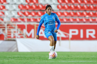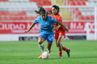 Aguascalientes, Aguascalientes, 29 de septiembre de 2025. Nicole Pérez, durante el partido correspondiente a la jornada 13 del torneo Apertura 2025 de la Liga BBVA MX, entre las Centellas del Necaxa y las Rayadas del Monterrey, realizado en el estadio Victoria. Foto: Imago7/ Rogelio Davila