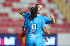 Aguascalientes, Aguascalientes, 29 de septiembre de 2025. Katty Martínez en festejo de gol, durante el partido correspondiente a la jornada 13 del torneo Apertura 2025 de la Liga BBVA MX, entre las Centellas del Necaxa y las Rayadas del Monterrey, realizado en el estadio Victoria. Foto: Imago7/ Rogelio Davila