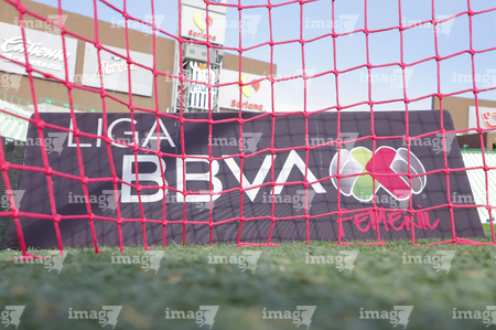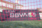 Torreón, Coahuila, 6 de octubre de 2025. Red de portería de la Campaña Rosa para la concientización del Cáncer de Mama, durante el partido correspondiente a la jornada 14 del torneo Apertura 2025 de la Liga BBVA MX Femenil, entre las Guerreras de Santos Laguna y las Bravas de FC Juárez, realizado en el estadio Corona. Foto: Imago7/ Saul Perales
