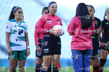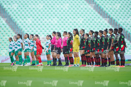 Torreón, Coahuila, 6 de octubre de 2025. Protocolo, durante el partido correspondiente a la jornada 14 del torneo Apertura 2025 de la Liga BBVA MX Femenil, entre las Guerreras de Santos Laguna y las Bravas de FC Juárez, realizado en el estadio Corona. Foto: Imago7/ Erick Saavedra