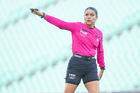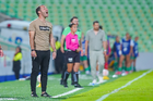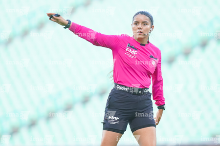 Torreón, Coahuila, 6 de octubre de 2025. Lee Fernanda Natasha Galán, árbitra central, durante el partido correspondiente a la jornada 14 del torneo Apertura 2025 de la Liga BBVA MX Femenil, entre las Guerreras de Santos Laguna y las Bravas de FC Juárez, realizado en el estadio Corona. Foto: Imago7/ Erick Saavedra