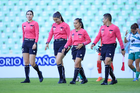 Torreón, Coahuila, 6 de octubre de 2025. Cuarteta arbitral, durante el partido correspondiente a la jornada 14 del torneo Apertura 2025 de la Liga BBVA MX Femenil, entre las Guerreras de Santos Laguna y las Bravas de FC Juárez, realizado en el estadio Corona. Foto: Imago7/ Saul Perales