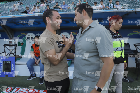 Torreón, Coahuila, 6 de octubre de 2025. Oscar Fernández, director técnico y Jhonatan Lazcano, director técnico durante el partido correspondiente a la jornada 14 del torneo Apertura 2025 de la Liga BBVA MX Femenil, entre las Guerreras de Santos Laguna y las Bravas de FC Juárez, realizado en el estadio Corona. Foto: Imago7/ Saul Perales