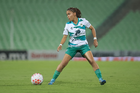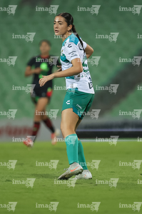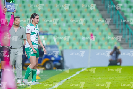Torreón, Coahuila, 6 de octubre de 2025. Debut de Julia De Santiago, durante el partido correspondiente a la jornada 14 del torneo Apertura 2025 de la Liga BBVA MX Femenil, entre las Guerreras de Santos Laguna y las Bravas de FC Juárez, realizado en el estadio Corona. Foto: Imago7/ Erick Saavedra