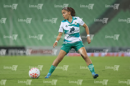 Torreón, Coahuila, 6 de octubre de 2025. Emily Alvarado, durante el partido correspondiente a la jornada 14 del torneo Apertura 2025 de la Liga BBVA MX Femenil, entre las Guerreras de Santos Laguna y las Bravas de FC Juárez, realizado en el estadio Corona. Foto: Imago7/ Saul Perales