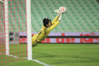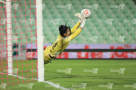 Torreón, Coahuila, 6 de octubre de 2025. Emily Alvarado ataja, durante el partido correspondiente a la jornada 14 del torneo Apertura 2025 de la Liga BBVA MX Femenil, entre las Guerreras de Santos Laguna y las Bravas de FC Juárez, realizado en el estadio Corona. Foto: Imago7/ Saul Perales