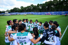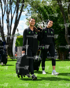 Ciudad de México, 11 de octubre de 2025. Jugadoras de Santos femenil, durante el partido correspondiente a la jornada 15 del torneo Apertura 2025 de la Liga BBVA MX Femenil, entre la Máquina Celeste del Cruz Azul y las Guerreras de Santos Laguna, realizado en La Noria. Foto: Imago7/ Alexis Chavez