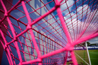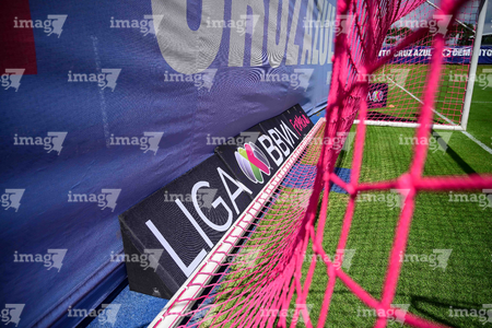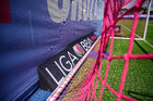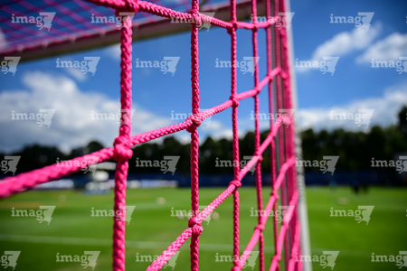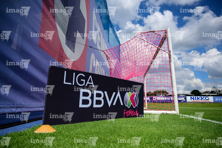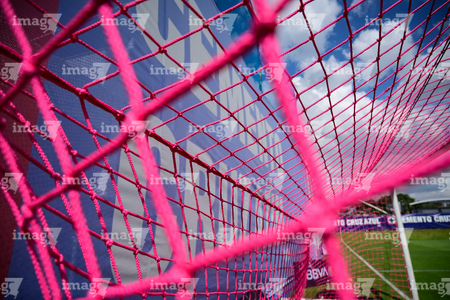 Ciudad de México, 11 de octubre de 2025. Red de portería de la Campaña Rosa para la concientización del Cáncer de Mama, durante el partido correspondiente a la jornada 15 del torneo Apertura 2025 de la Liga BBVA MX Femenil, entre la Máquina Celeste del Cruz Azul y las Guerreras de Santos Laguna, realizado en La Noria. Foto: Imago7/ Alexis Chavez
