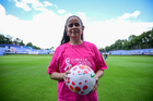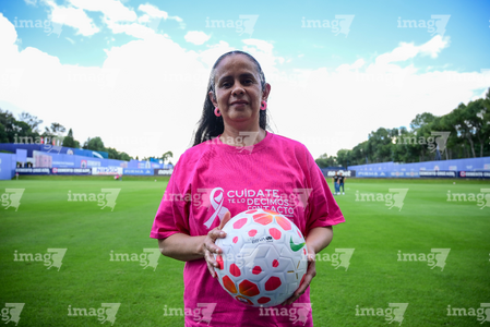 Ciudad de México, 11 de octubre de 2025. Embajadora de la Campaña Rosa para la concientización del Cáncer de Mama, durante el partido correspondiente a la jornada 15 del torneo Apertura 2025 de la Liga BBVA MX Femenil, entre la Máquina Celeste del Cruz Azul y las Guerreras de Santos Laguna, realizado en La Noria. Foto: Imago7/ Alexis Chavez