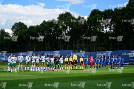 Ciudad de México, 11 de octubre de 2025. Protocolo, durante el partido correspondiente a la jornada 15 del torneo Apertura 2025 de la Liga BBVA MX Femenil, entre la Máquina Celeste del Cruz Azul y las Guerreras de Santos Laguna, realizado en La Noria. Foto: Imago7/ Alexis Chavez