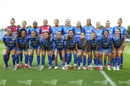 Ciudad de México, 11 de octubre de 2025. Foto de equipo de Cruz Azul, durante el partido correspondiente a la jornada 15 del torneo Apertura 2025 de la Liga BBVA MX Femenil, entre la Máquina Celeste del Cruz Azul y las Guerreras de Santos Laguna, realizado en La Noria. Foto: Imago7/ Carlos Vargas