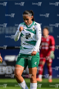 Ciudad de México, 11 de octubre de 2025. Julieta De Santiago, durante el partido correspondiente a la jornada 15 del torneo Apertura 2025 de la Liga BBVA MX Femenil, entre la Máquina Celeste del Cruz Azul y las Guerreras de Santos Laguna, realizado en La Noria. Foto: Imago7/ Alexis Chavez