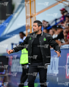 Ciudad de México, 11 de octubre de 2025. Jhonatan Lazcano, director técnico, durante el partido correspondiente a la jornada 15 del torneo Apertura 2025 de la Liga BBVA MX Femenil, entre la Máquina Celeste del Cruz Azul y las Guerreras de Santos Laguna, realizado en La Noria. Foto: Imago7/ Alexis Chavez