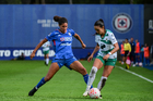 Ciudad de México, 11 de octubre de 2025. Niomi Grimaldo, durante el partido correspondiente a la jornada 15 del torneo Apertura 2025 de la Liga BBVA MX Femenil, entre la Máquina Celeste del Cruz Azul y las Guerreras de Santos Laguna, realizado en La Noria. Foto: Imago7/ Alexis Chavez