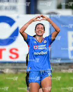 Ciudad de México, 11 de octubre de 2025. Areli Reyes en festejo, durante el partido correspondiente a la jornada 15 del torneo Apertura 2025 de la Liga BBVA MX Femenil, entre la Máquina Celeste del Cruz Azul y las Guerreras de Santos Laguna, realizado en La Noria. Foto: Imago7/ Alexis Chavez