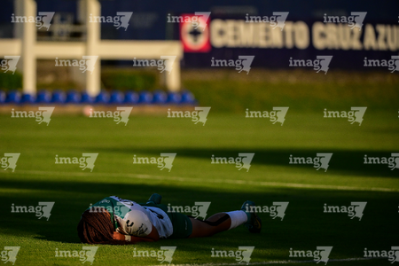 Ciudad de México, 11 de octubre de 2025. Anahí Gómez resultó lesionada, durante el partido correspondiente a la jornada 15 del torneo Apertura 2025 de la Liga BBVA MX Femenil, entre la Máquina Celeste del Cruz Azul y las Guerreras de Santos Laguna, realizado en La Noria. Foto: Imago7/ Alexis Chavez