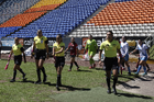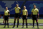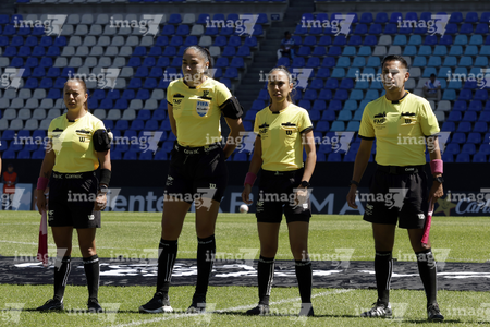 Puebla, Puebla, 19 de octubre de 2025. Cuarteta arbitral, durante el partido correspondiente a la jornada 16 del torneo Apertura 2025 de la Liga BBVA MX Femenil, entre el Club Puebla y las Xolas de Tijuana, realizado en el estadio Cuauhtémoc. Foto: Imago7/ Mireya Novo