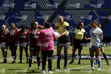Puebla, Puebla, 19 de octubre de 2025. Protocolo, durante el partido correspondiente a la jornada 16 del torneo Apertura 2025 de la Liga BBVA MX Femenil, entre el Club Puebla y las Xolas de Tijuana, realizado en el estadio Cuauhtémoc. Foto: Imago7/ Mireya Novo