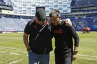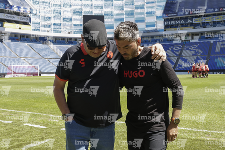 Puebla, Puebla, 19 de octubre de 2025. Juan Romo, director técnico y Carlos Adrián Morales, director técnico, durante el partido correspondiente a la jornada 16 del torneo Apertura 2025 de la Liga BBVA MX Femenil, entre el Club Puebla y las Xolas de Tijuana, realizado en el estadio Cuauhtémoc. Foto: Imago7/ Mireya Novo