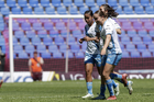 Puebla, Puebla, 19 de octubre de 2025. Jugadoras de Xolas en festejo de autogol, durante el partido correspondiente a la jornada 16 del torneo Apertura 2025 de la Liga BBVA MX Femenil, entre el Club Puebla y las Xolas de Tijuana, realizado en el estadio Cuauhtémoc. Foto: Imago7/ Mireya Novo