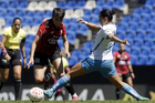 Puebla, Puebla, 19 de octubre de 2025. Jaqueline González y Roselord Borgella, durante el partido correspondiente a la jornada 16 del torneo Apertura 2025 de la Liga BBVA MX Femenil, entre el Club Puebla y las Xolas de Tijuana, realizado en el estadio Cuauhtémoc. Foto: Imago7/ Mireya Novo