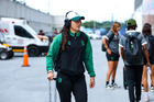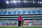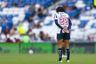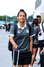 Guadalupe, Nuevo León, 19 de octubre de 2025. Diana García en minuto de silencio por las víctimas de las inundaciones, durante el partido correspondiente a la jornada 16 del torneo Apertura 2025 de la Liga BBVA MX Femenil, entre las Rayadas del Monterrey y las Esmeraldas del León, realizado en el estadio BBVA. Foto: Imago7/