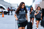 Guadalupe, Nuevo León, 19 de octubre de 2025. Embajadora de la Campaña Rosa para la concientización del Cáncer de Mama, durante el partido correspondiente a la jornada 16 del torneo Apertura 2025 de la Liga BBVA MX Femenil, entre las Rayadas del Monterrey y las Esmeraldas del León, realizado en el estadio BBVA. Foto: Imago7/