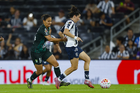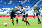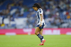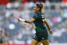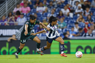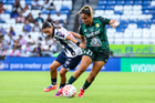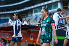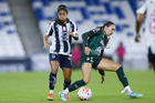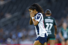 Guadalupe, Nuevo León, 19 de octubre de 2025. Nicole Pérez, durante el partido correspondiente a la jornada 16 del torneo Apertura 2025 de la Liga BBVA MX Femenil, entre las Rayadas del Monterrey y las Esmeraldas del León, realizado en el estadio BBVA. Foto: Imago7/ Nora Guerero