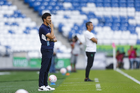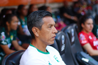 Guadalupe, Nuevo León, 19 de octubre de 2025. Leonardo Álvarez, director técnico, durante el partido correspondiente a la jornada 16 del torneo Apertura 2025 de la Liga BBVA MX Femenil, entre las Rayadas del Monterrey y las Esmeraldas del León, realizado en el estadio BBVA. Foto: Imago7/
